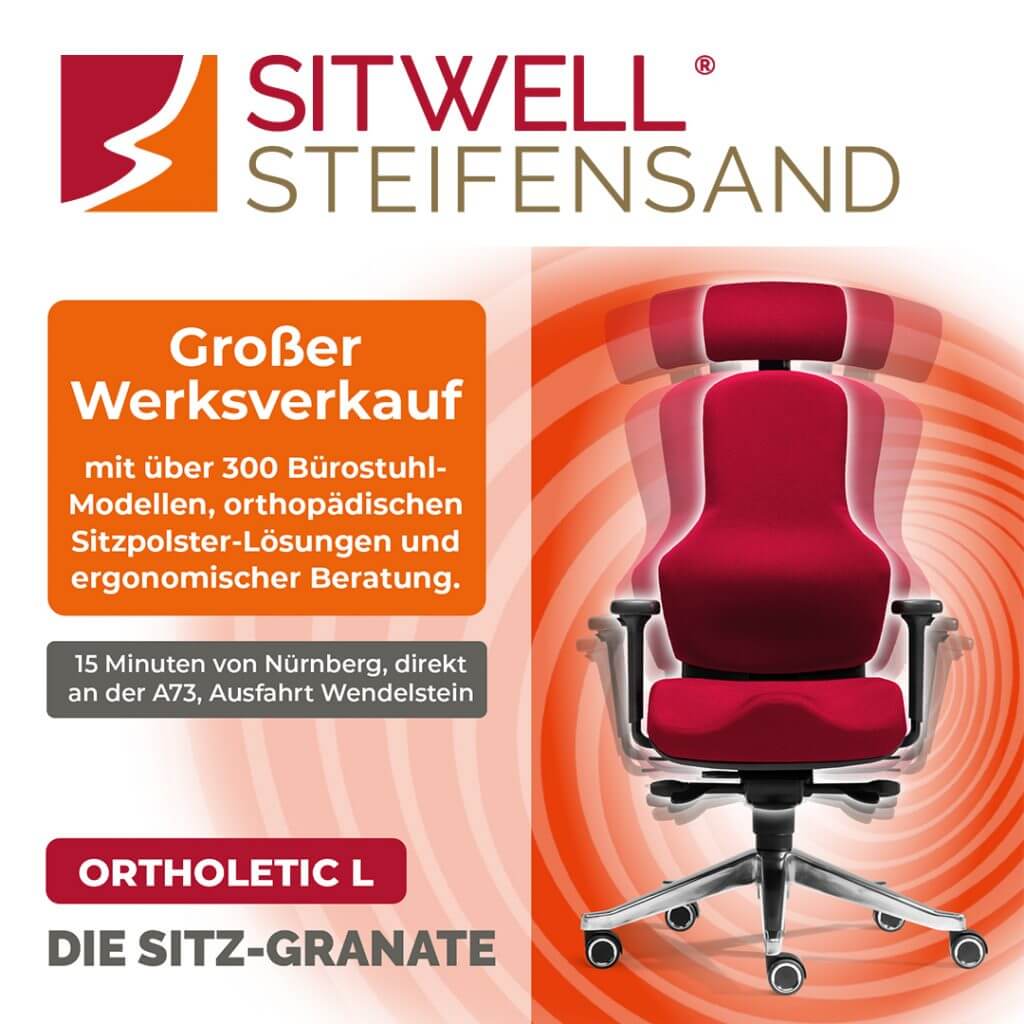 Sind Sie derzeit auf der Suche nach einer Sitzgelegenheit, die gleichermaßen Komfort bietet und Ihren Rücken entlastet? Die SITWELL® STEIFENSAND AG ist Ihr kompetenter Ansprechpartner für dieses Bedürfnis. Wir präsentieren Ihnen ein erstklassiges Sortiment an hochwertigen Schreibtischstühlen und gesundheitsfördernden Sitzkonzepten, die Ihre Büroeinrichtung in Gunzenhausen bereichern und gleichzeitig einen wertvollen Beitrag zu Ihrer körperlichen Vitalität leisten. Da ein erheblicher Teil des Alltags im Sitzen verbracht wird, spielt die Wahl des richtigen Bestuhlungssystems eine entscheidende Rolle für eine schmerzfreie Haltung und das allgemeine Wohlbefinden.